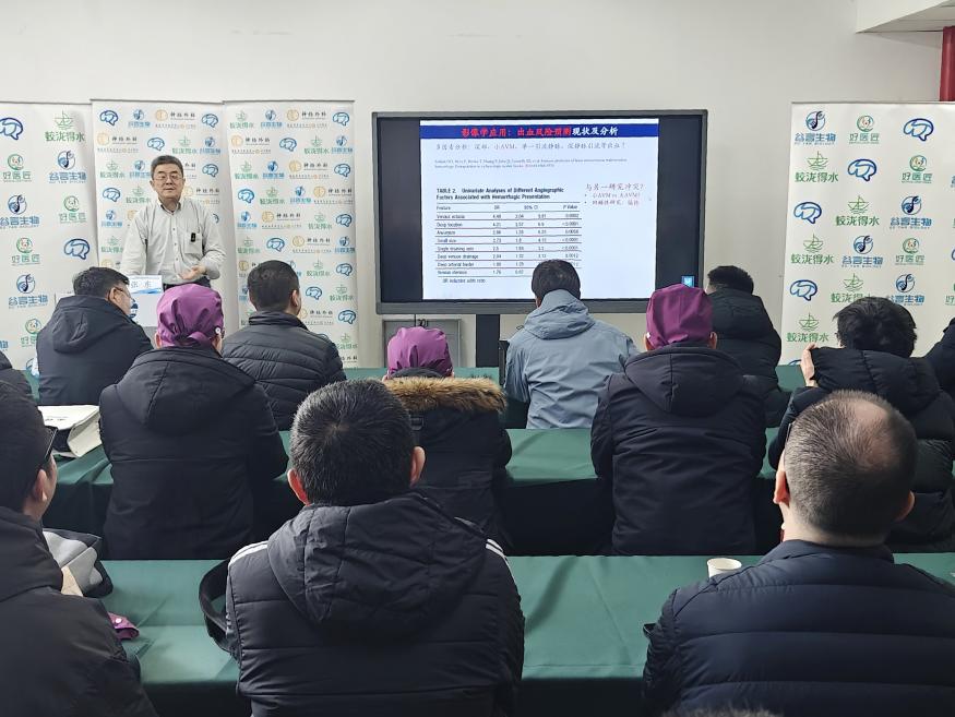 理論授課階段,北京醫(yī)院張東教授、裴傲教授分別就腦血管畸形、內(nèi)鏡經(jīng)蝶解剖,系統(tǒng)闡述了其科學(xué)防治、診療新進(jìn)展等課題。青島大學(xué)附屬醫(yī)院豐育功教授通過典型病例,重點(diǎn)講解了夾閉動(dòng)脈瘤的手術(shù)入路策略。