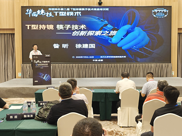 開幕式上,四川大學(xué)華西醫(yī)院徐建國(guó)教授發(fā)表開班致辭。本次培訓(xùn)匯聚全國(guó)各地參訓(xùn)學(xué)員,通過3D顱腦模型實(shí)操、手術(shù)實(shí)戰(zhàn)觀摩和理論授課,帶領(lǐng)學(xué)員們由淺及深的學(xué)習(xí)“T型持鏡筷子技術(shù)”。