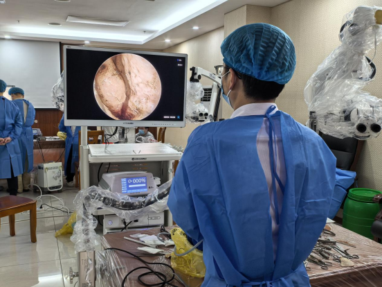 期間,神經(jīng)內(nèi)鏡腦出血實(shí)操培訓(xùn)班受到廣泛關(guān)注,參會(huì)人員通過實(shí)操學(xué)習(xí),一定程度上掌握了神經(jīng)內(nèi)鏡的相關(guān)先進(jìn)技術(shù)。西山為本次培訓(xùn)班提供了4K內(nèi)窺鏡、手術(shù)動(dòng)力裝置技術(shù)支持,助力學(xué)員們?cè)趯?shí)操中更好地理解和運(yùn)用相關(guān)技術(shù),促進(jìn)培訓(xùn)的順利開展。