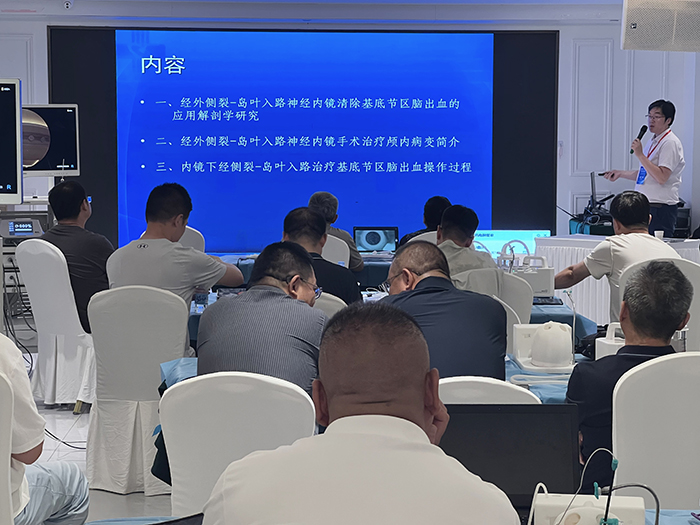 大會(huì)期間,中國(guó)神經(jīng)內(nèi)鏡微創(chuàng)治療高血壓腦出血技術(shù)推廣會(huì)及高級(jí)培訓(xùn)班同步進(jìn)行。內(nèi)蒙古自治區(qū)人民醫(yī)院張瑞劍教授開班致辭,首都醫(yī)科大學(xué)附屬北京世紀(jì)壇醫(yī)院朱廣通教授、首都醫(yī)科大學(xué)附屬北京世紀(jì)壇醫(yī)院毛貝貝教授等受邀進(jìn)行理論授課與實(shí)操演示,通過此次培訓(xùn)班學(xué)習(xí),學(xué)員們對(duì)腦出血的內(nèi)鏡微創(chuàng)手術(shù)治療有了更深的理解和體會(huì)。