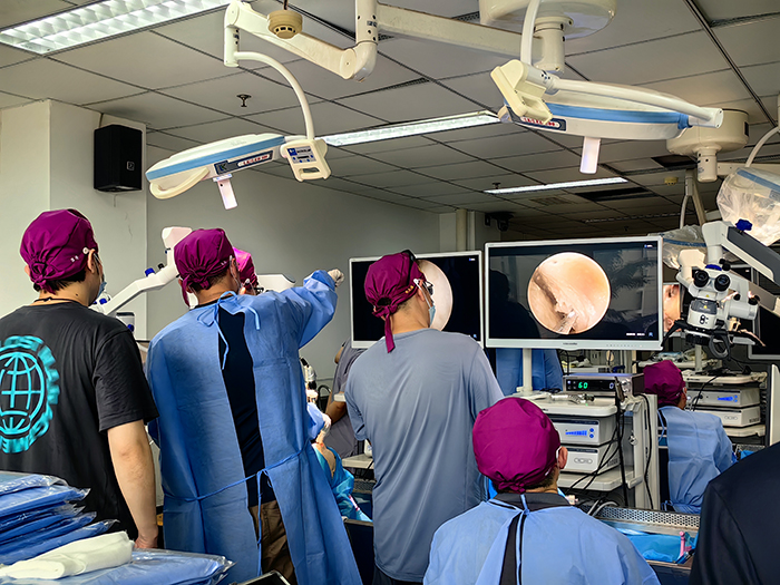 此次培訓(xùn)班具有三鏡融通·TEAM閉環(huán)的立體化教學(xué)體系、雙師護(hù)航·精益求精,實(shí)戰(zhàn)鍛造手術(shù)藝術(shù)、蛟龍聚首·名匠云集,權(quán)威師資領(lǐng)航術(shù)道等培訓(xùn)特色。實(shí)操環(huán)節(jié)邀請(qǐng)到了北京醫(yī)院王瀧教授、香港伊利沙伯醫(yī)院麥凱均教授、青島大學(xué)青島醫(yī)學(xué)院王建鵬教授等操作示范。西山提供的4k內(nèi)窺鏡及手術(shù)動(dòng)力裝置受到學(xué)員和指導(dǎo)老師的一致稱贊與好評(píng)。