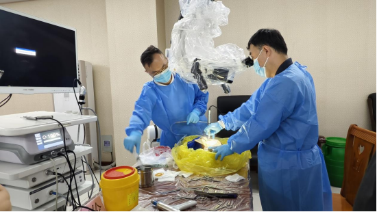 實(shí)踐操作階段,在四川大學(xué)華西醫(yī)院昝昕教授、劉浩教授等專家的現(xiàn)場(chǎng)指導(dǎo)下,學(xué)員們更加直觀的感受、學(xué)習(xí)T型筷術(shù)的精妙之處。培訓(xùn)課上青年醫(yī)師通過"提高在狹窄空間中操作的自由度"的課題學(xué)習(xí),掌握神經(jīng)內(nèi)鏡顱底外科手術(shù)技術(shù),為神經(jīng)外科領(lǐng)域的發(fā)展奠定基礎(chǔ)。西山將持續(xù)助力神經(jīng)外科事業(yè)發(fā)展,為廣大神經(jīng)外科醫(yī)師的培養(yǎng)與成長(zhǎng),注入西山力量,造福廣大患者!